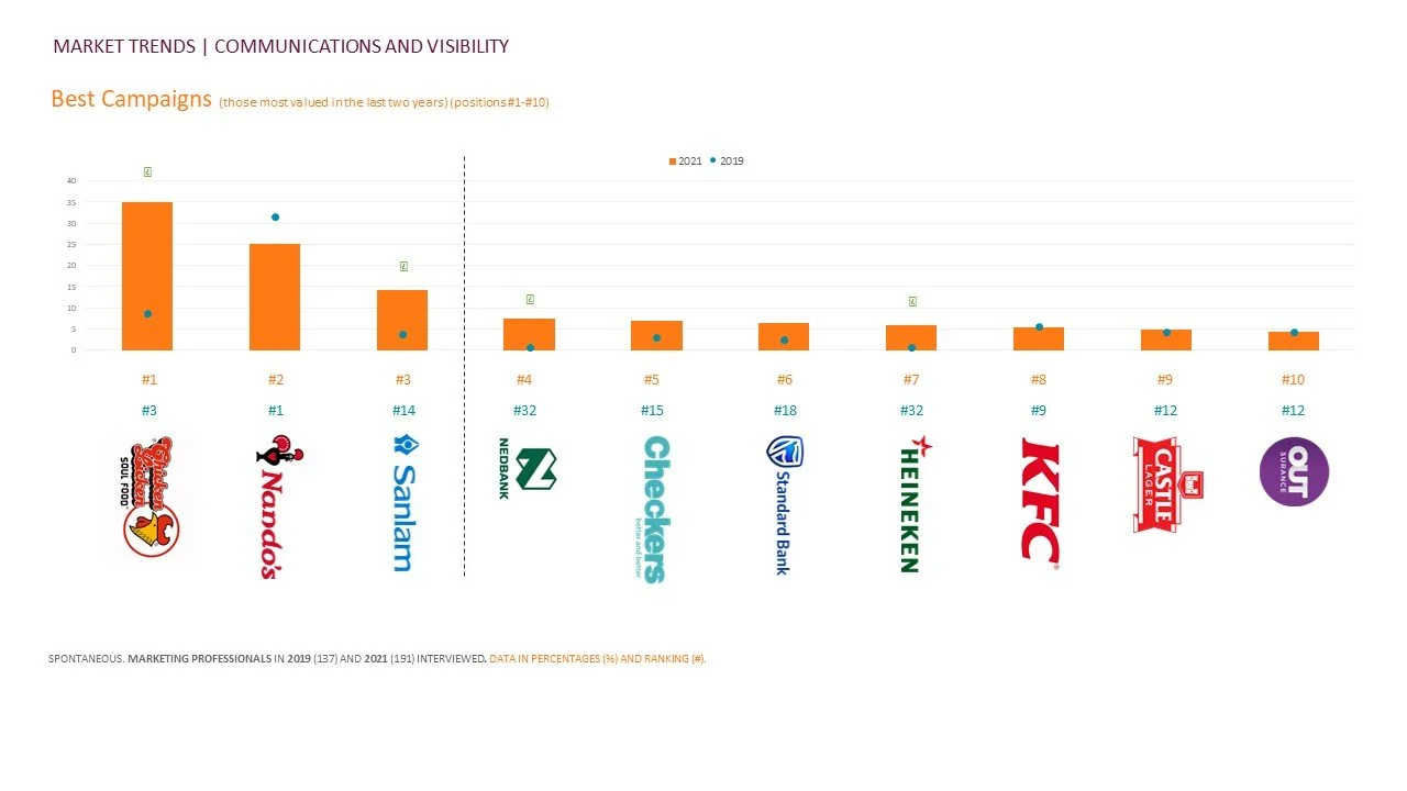 “The Best Campaign, determined by a review of the last two years by each respondent, is Chicken Licken,” McDowell notes.