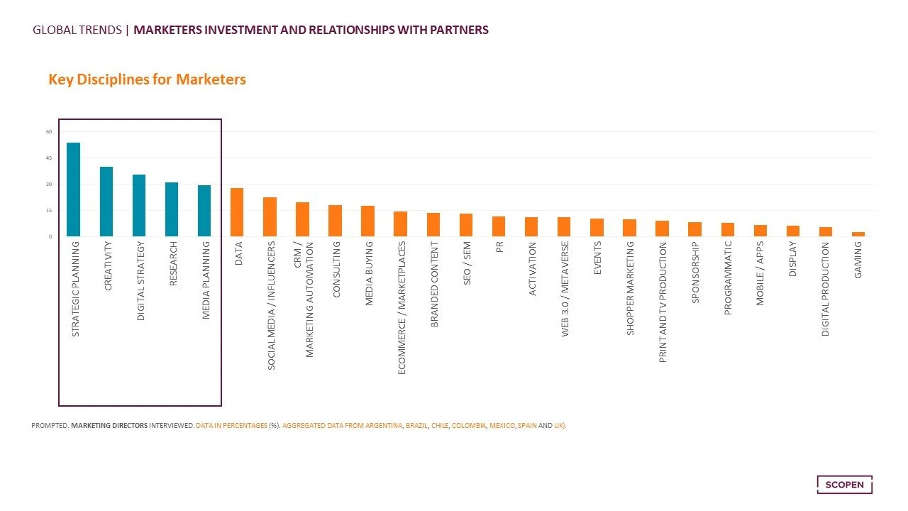 This is supported by Scopen global trends, which show strategic planning and creativity being the disciplines most valued by marketers.