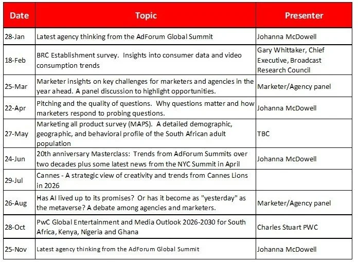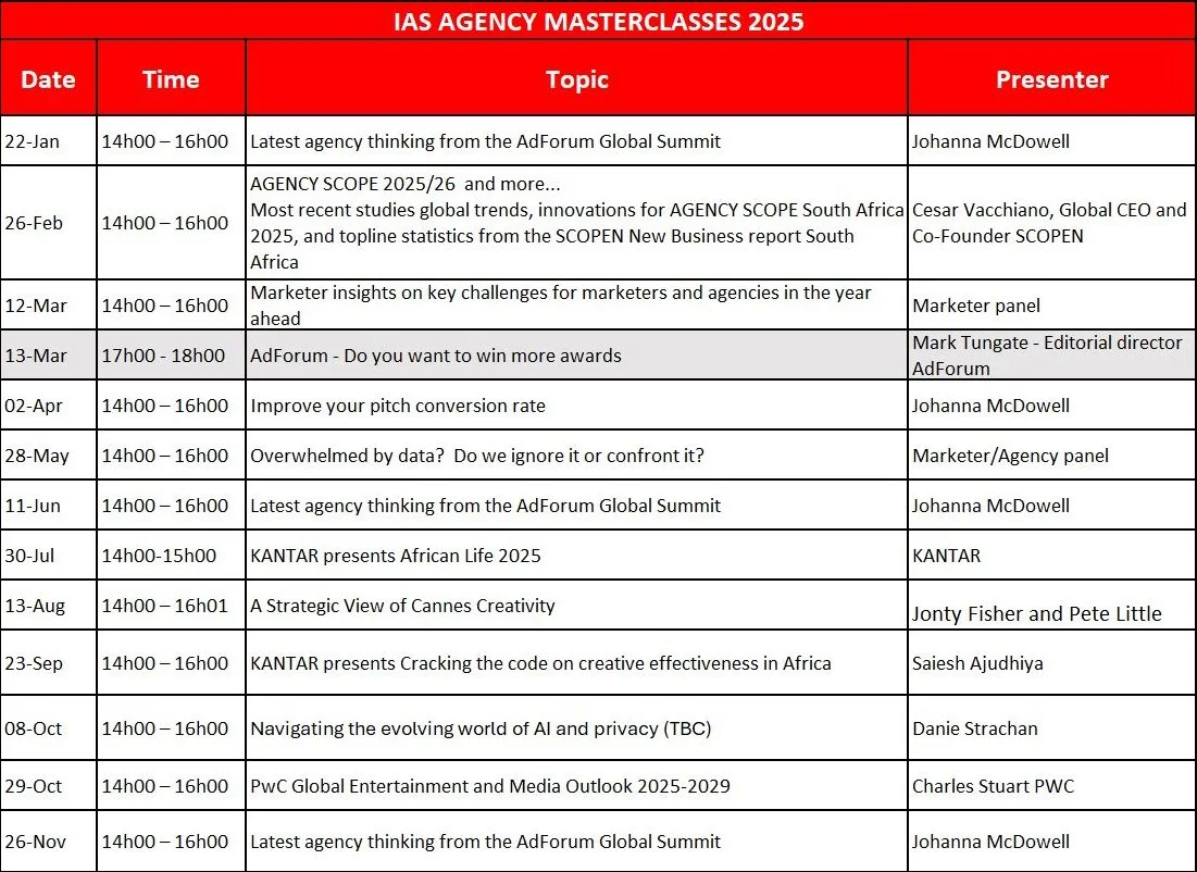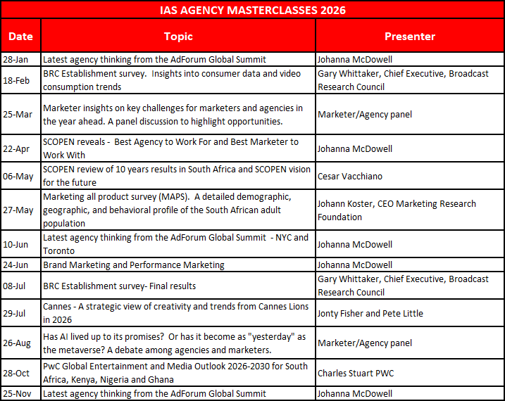 Agency Masterclasses Schedule